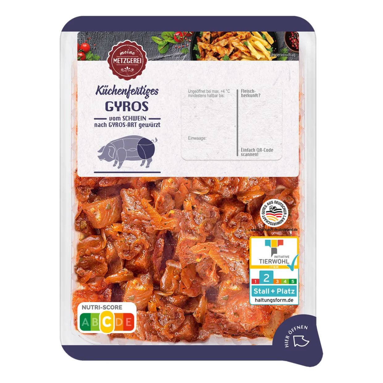 Frisch; vom Schwein; aus dem Schinken; nach Gyros-Art gewürzt; zum Braten